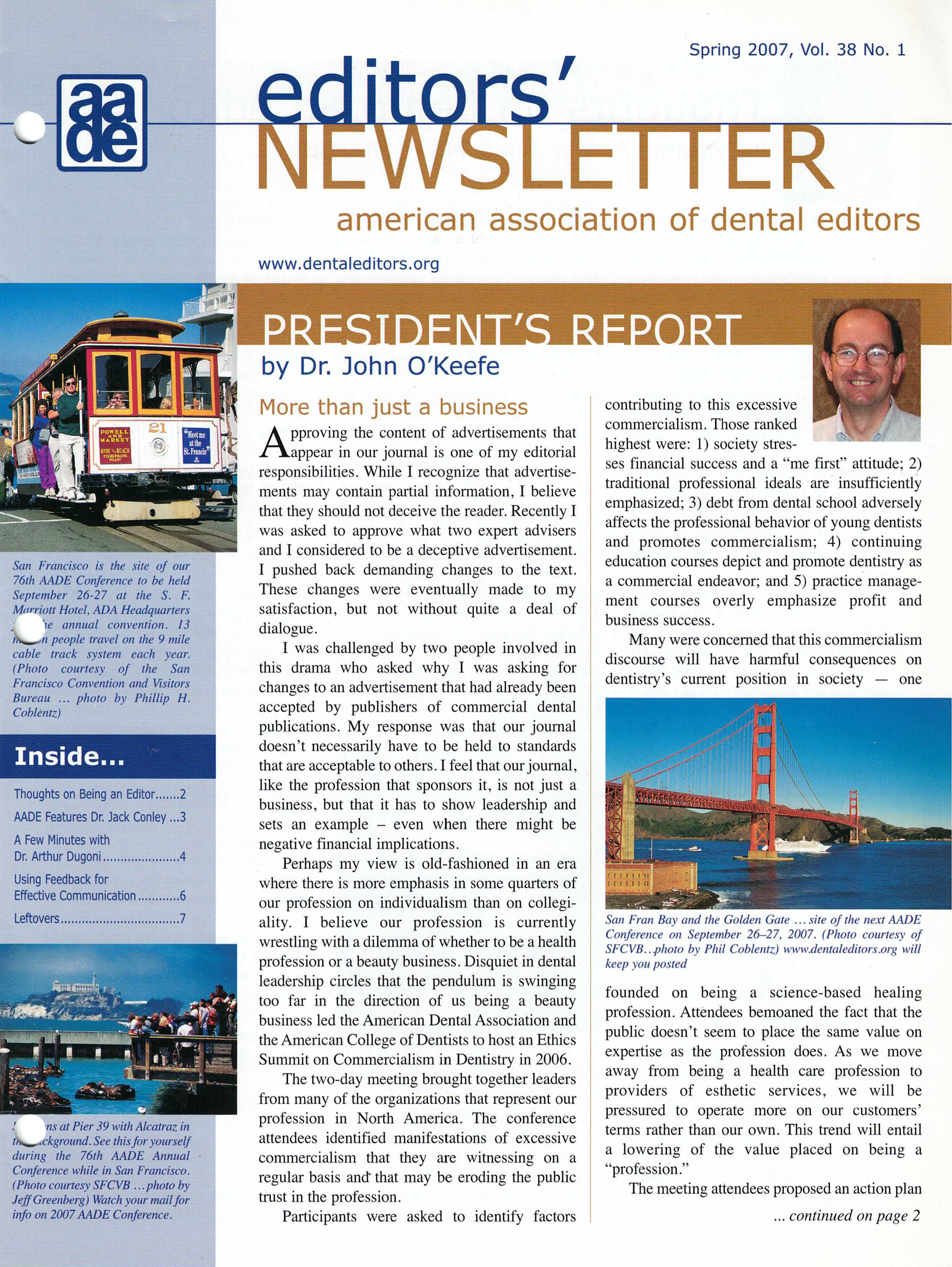 The Communicator is the official journal of the American Association of Dental Editors and Journalists (AADEJ). It is published quarterly, distributed digitally via email to members, and posted on the Association's website, AADEJ.org. Each issue includes regular updates from the editorial team and AADEJ board, as well as feature articles on current issues in the field.