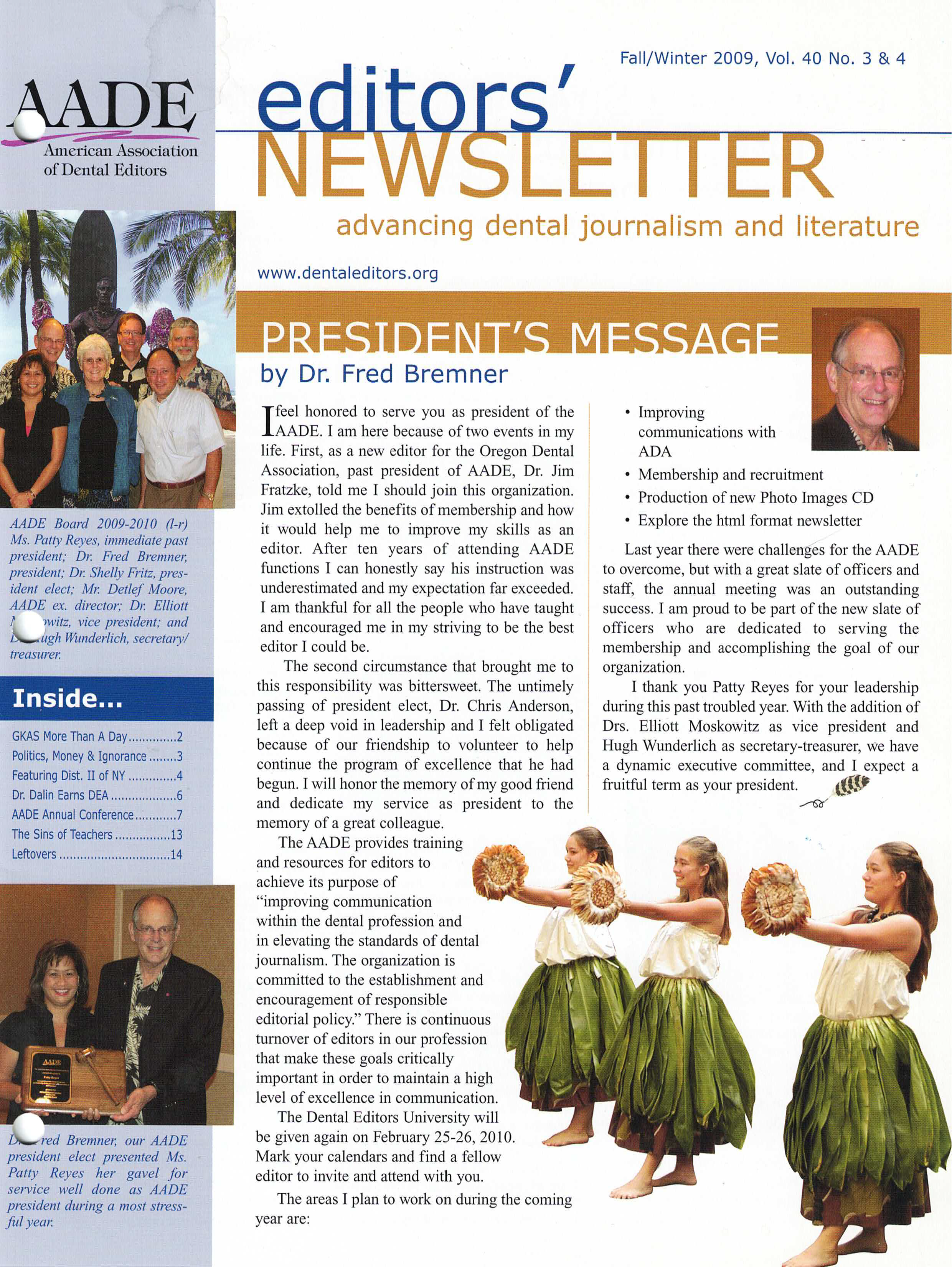 The Communicator is the official journal of the American Association of Dental Editors and Journalists (AADEJ). It is published quarterly, distributed digitally via email to members, and posted on the Association's website, AADEJ.org. Each issue includes regular updates from the editorial team and AADEJ board, as well as feature articles on current issues in the field.