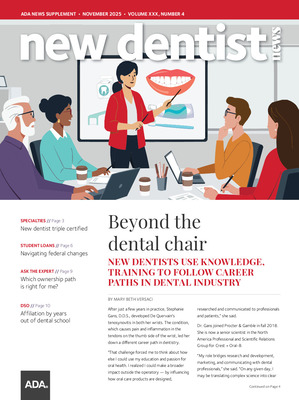 This collection is archival and the content in it should not be assumed to represent current information. Visit the New Dentist News page on the ADA website for recent editions.