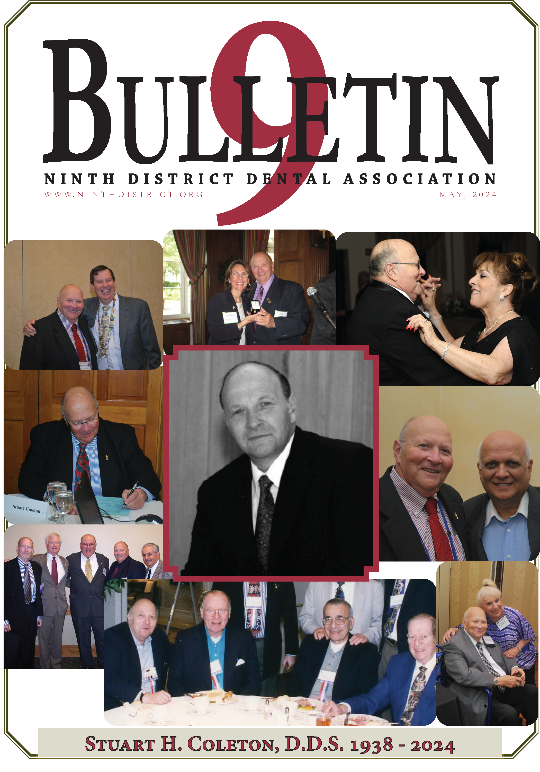 The Bulletin of the Ninth District Dental Association is published four times annually in the months of March, May, September and November. It is distributed to all Association members from the counties of Dutchess, Orange, Putnam, Rockland and Westchester in the state of New York.