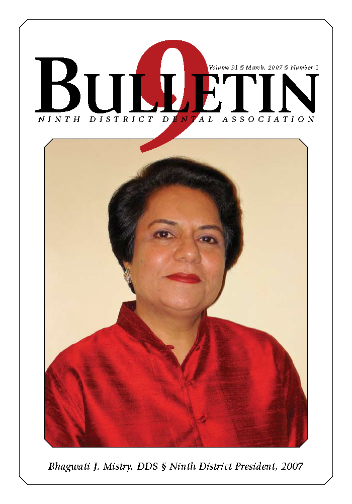 The Bulletin of the Ninth District Dental Association is published four times annually in the months of March, May, September and November. It is distributed to all Association members from the counties of Dutchess, Orange, Putnam, Rockland and Westchester in the state of New York.