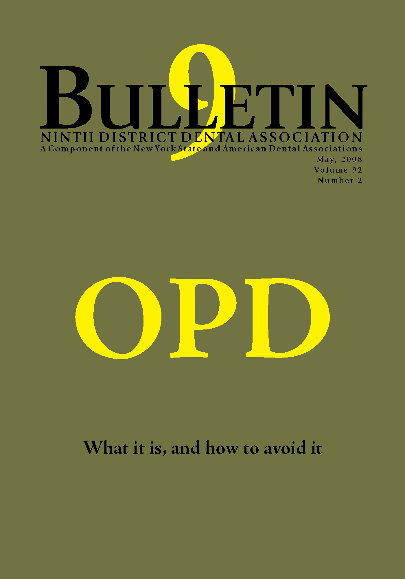 The Bulletin of the Ninth District Dental Association is published four times annually in the months of March, May, September and November. It is distributed to all Association members from the counties of Dutchess, Orange, Putnam, Rockland and Westchester in the state of New York.