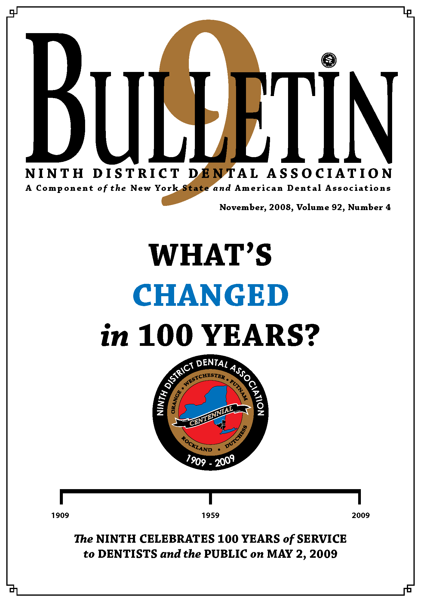 The Bulletin of the Ninth District Dental Association is published four times annually in the months of March, May, September and November. It is distributed to all Association members from the counties of Dutchess, Orange, Putnam, Rockland and Westchester in the state of New York.