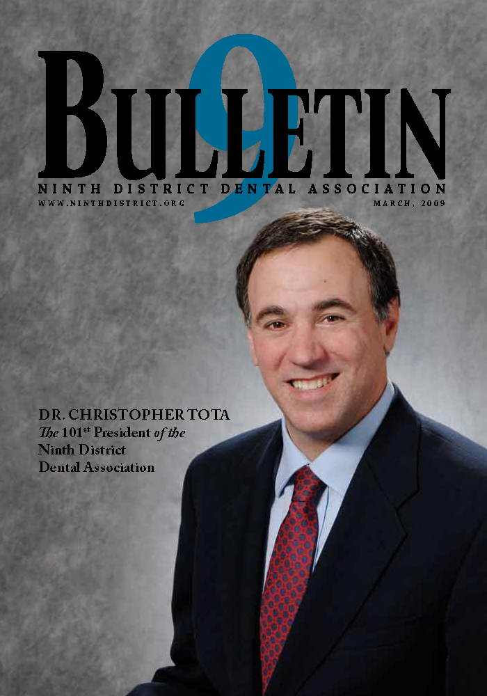 The Bulletin of the Ninth District Dental Association is published four times annually in the months of March, May, September and November. It is distributed to all Association members from the counties of Dutchess, Orange, Putnam, Rockland and Westchester in the state of New York.